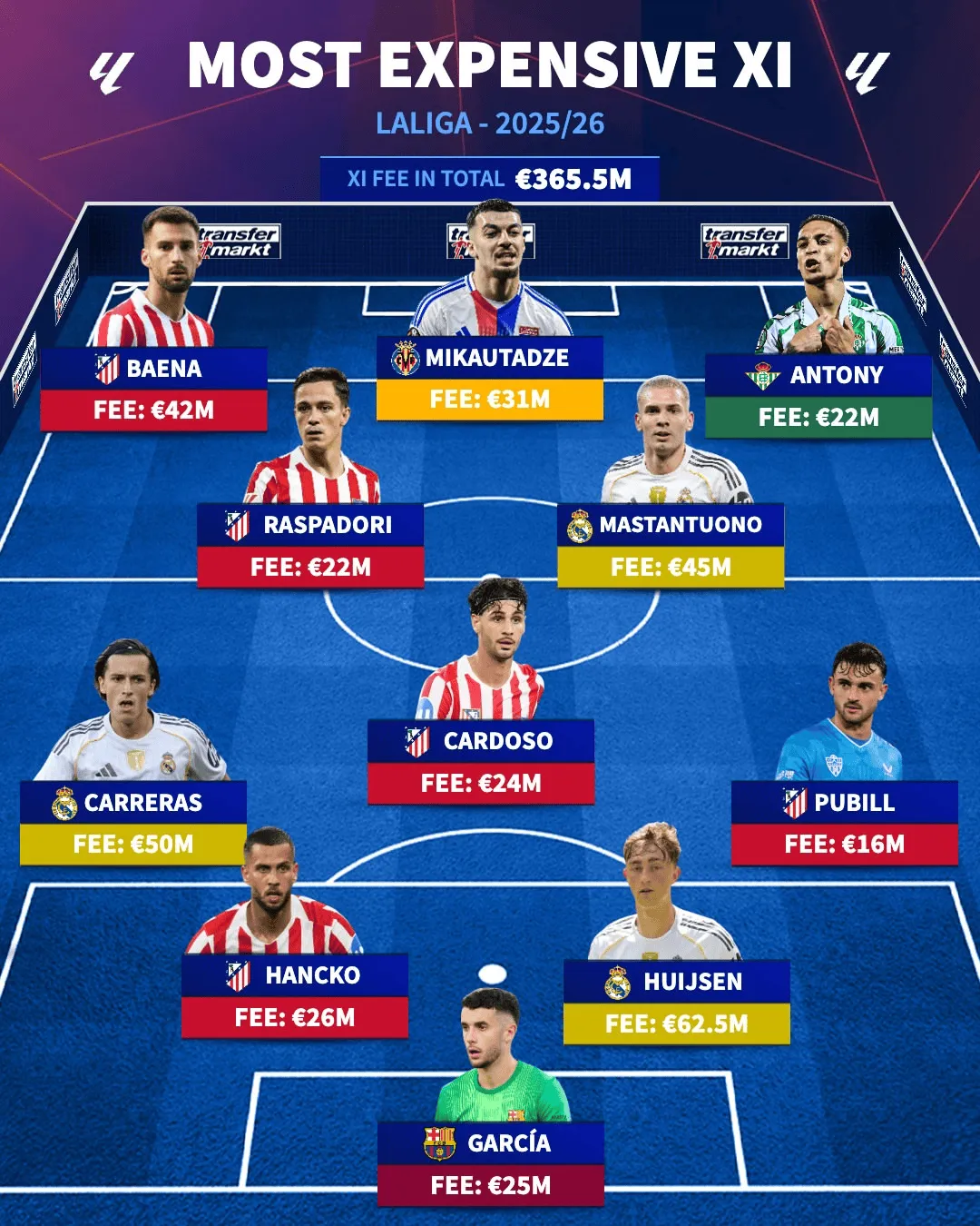 西甲今夏最贵引援阵容:赫伊森领衔,安东尼、卡雷拉斯在列